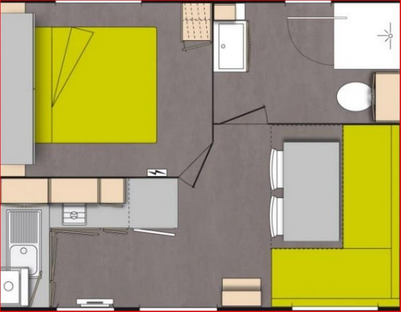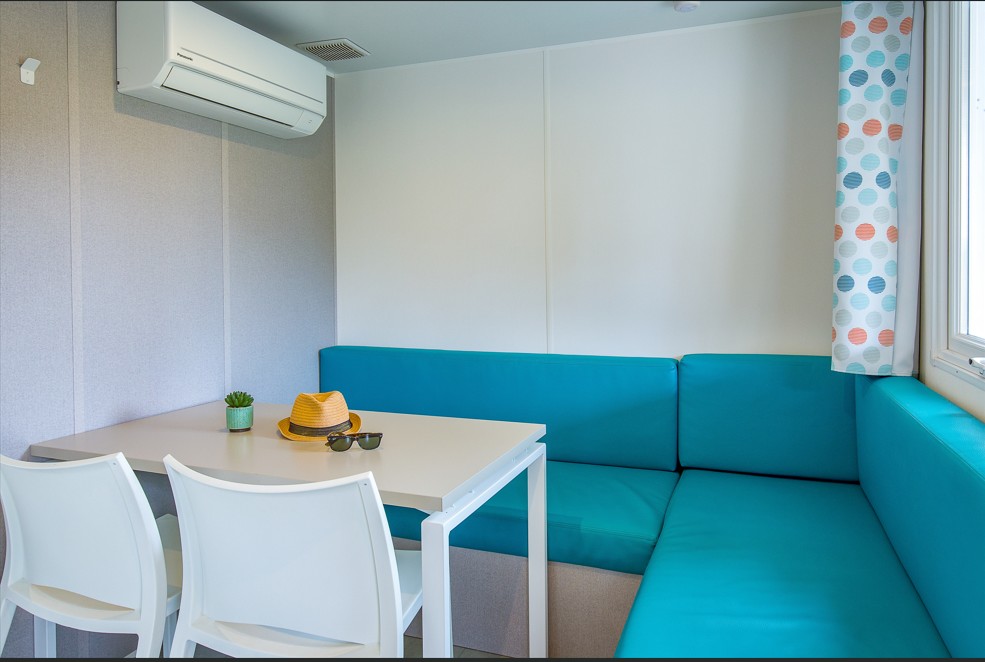* Le mobil-home O'HARA climatisé avec 1 chambre est équipé pour 2 personnes :